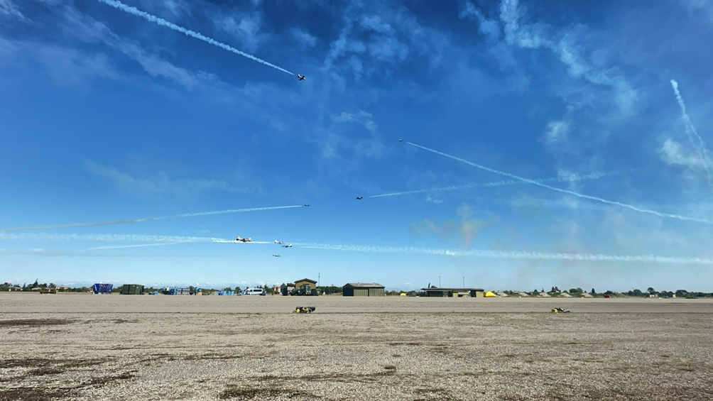 La missione del mattino termina alle 10.30 con l’atterraggio dell’ultimo aereo. Le attività riprenderanno alle 13.50 e partiranno in sequenza nell’arco di circa un’ora ben ventotto aerei dei vari reparti presenti.