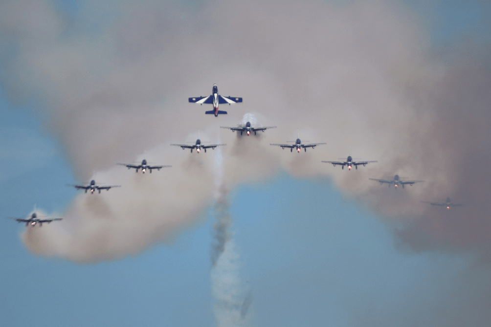 While the wingman lands from runway 11, the leader makes two low approaches with a dizzying return climb at full AB and condensation trails on the wingtips, we are grateful for the spectacle and face the long journey home with satisfaction.
