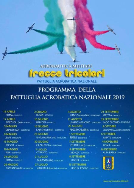 Ecco finalmente la notizia che tutti aspettavano, il programma delle Frecce Tricolori per il 2019!