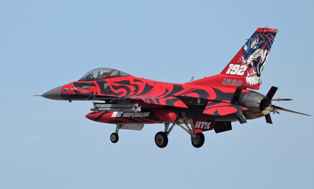 E la Fiera degli F16 che qua erano presenti con tante versioni, dagli F16A dei Jaguares portoghesi, sempre gli ultimi a staccare le ruote dalla pista, agli F16V polacchi, la versione più recente, passando per gli F16AM belgi, gli F16C turchi e greci, quelli turchi coloratissimi entrambi.