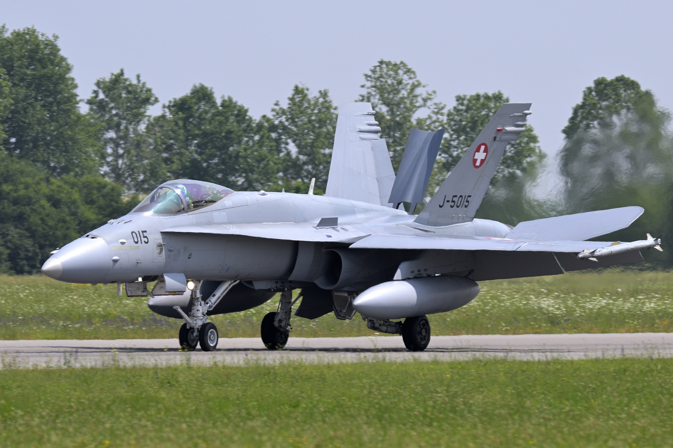 A riprova che questa missione include gli F35, ecco arrivare sul cielo campo l’esemplare 6-06 che effettua due finti atterraggi lasciandoci a bocca aperta! Poco dopo gli svizzeri sono di ritorno ed atterrano in doppia coppia, la missione è durata una oretta scarsa e sarà la più breve della giornata.